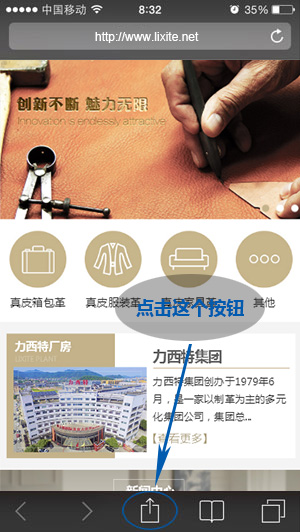 (1)用苹果原生浏览器Safari打开您的手机网站